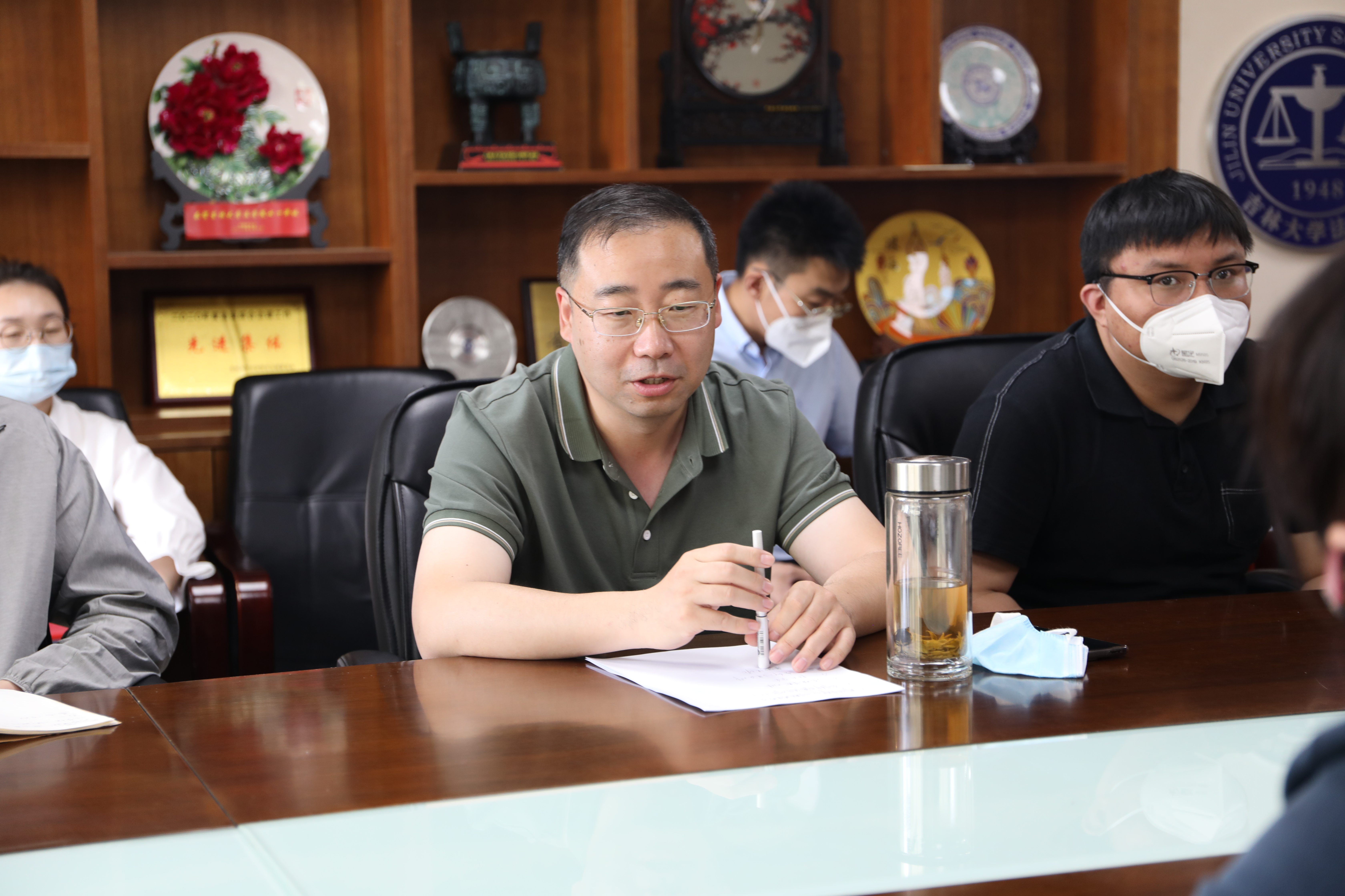 院长助理陈殿友老师对疫情防控期间驻校工作的张俊峰、吕欣、骆旷达、赵昊骏、房圣瑞、肖亮和刘舰等几位老师表示了由衷的敬佩,在最困难的时候他们逆行而上,热心地、不厌其烦地为师生服务,为大家做了很多实实在在的好事,他们的行为符合社会主义核心价值观,体现了一名共产党员的精神境界和责任担当。院长助理于冰老师认为,校园疫情防控工作取得了显著的成绩,受到师生、家长和校内外的普遍赞誉,与校院两级党委坚强正确的领导分不开,与驻校工作的各位师生志愿者的辛勤付出分不开。党办主任张舒老师指出,疫情防控是新时代的战役,在这场战役初起的时候,学院党委第一时间强化了抗疫工作领导小组建设,指导学院师生的抗疫工作;第一时间做好师生的思想引领和心理疏导工作,先后通过官微平台发布了《致吉大法学全体同学的一封信》、《致吉大法学最美志愿者的一封信》《致吉大法学全体教师的一封信》和《吉大法学学子致校友们的回信》,在“疫情大考”中,切实发挥了基层党委的重要作用。其他各位老师在听取了驻校工作老师的讲述后,也结合个人在疫情期间的工作和生活经历分享了感人的故事、难忘的经历和深深的体会。