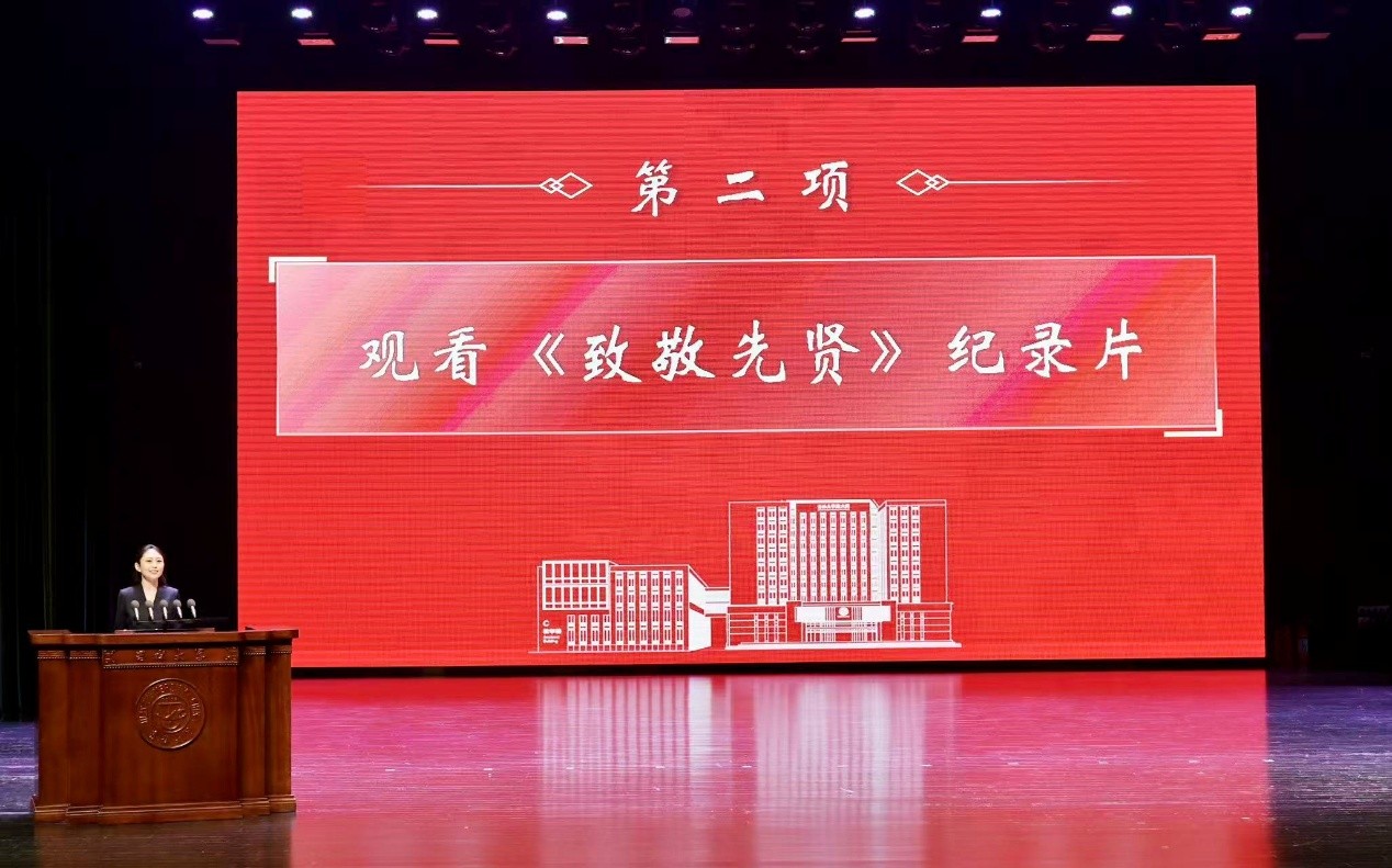 先贤为炬,师者如星。典礼伊始,全体师生共同观看了第13期《致敬先贤——吉大法学逐梦前行历史纪录片》。片中,任振铎先生1950年代授课的黑白影像、堆典籍的书桌、致学生的泛黄信笺次第展开,讲述其深耕法学研究、参与早期立法、培育数十位行业骨干的师者人生,更彰显“与党同心”的育人初心。先贤事迹深深触动师生,更让“明德笃行,隆法致公”的院训文脉清晰可感。现场静默凝视间,精神的火种已悄然传递。