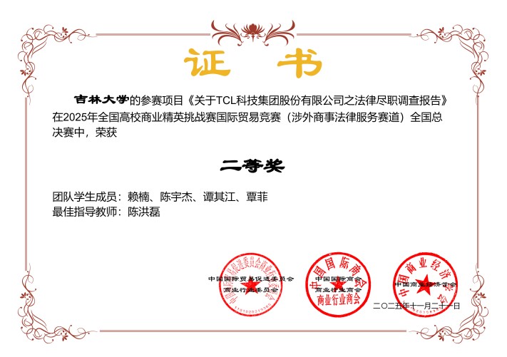 本科学生学科竞赛B*等级。涉外商事法律服务赛道要求参赛团队以法律服务机构身份,对真实企业开展全面的法律尽职调查。