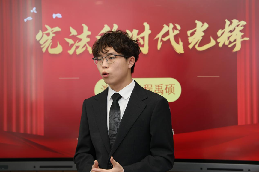 6.程禹硕同学演讲《宪法的时代光辉》:通过苏州大学学生赵某枫合成传播淫秽图片侵权案,阐释宪法第38条人格尊严不受侵犯的条款,强调数字时代宪法对公民权利的线上线下全维度保护,案例鲜活,思考深刻。