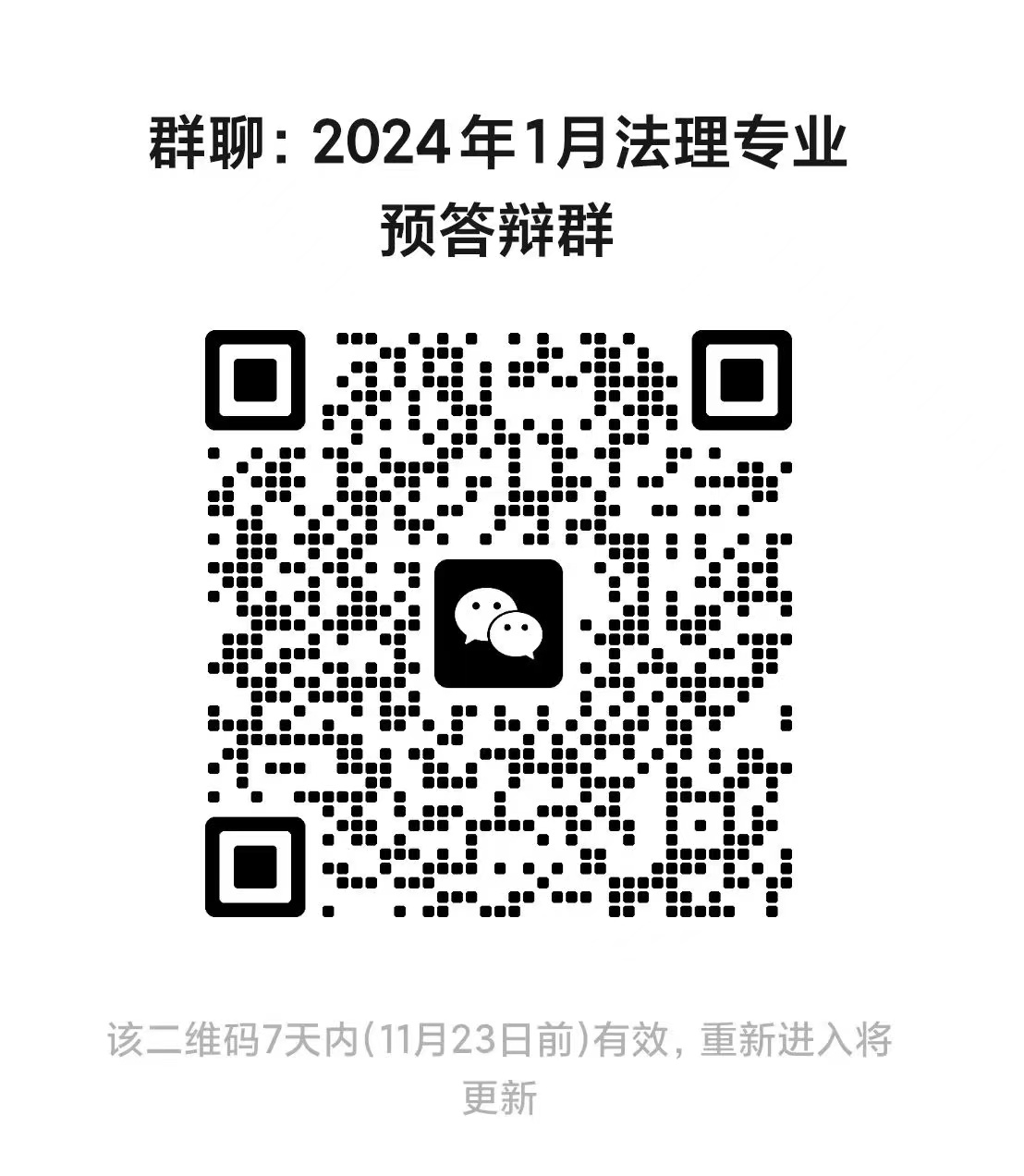 拟于2023年12月下旬收集相关材料。请参加2023年下半年法学理论专业博士、硕士研究生学位论文预答辩、开题的同学,分别加入预答辩微信群和开题微信群。后续相关信息会在群内公布。