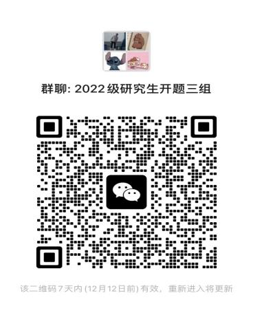 博士开题、预答辩初拟于2024年1月7日(周日)进行,请参加开题、预答辩的博士研究生扫码进入微信群。