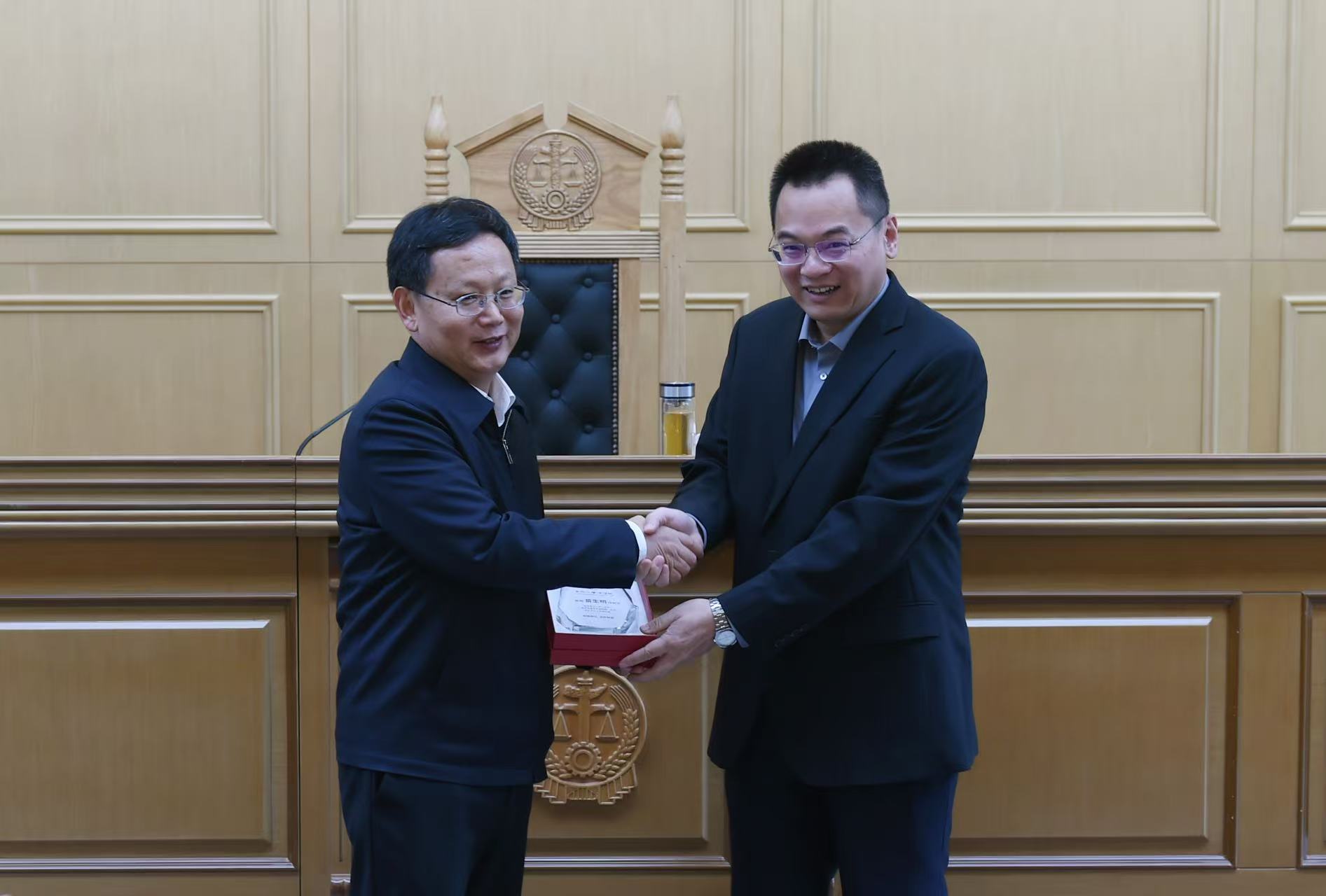 党委副书记、组织部部长姚毓春为苗生明副检察长颁发授课纪念牌