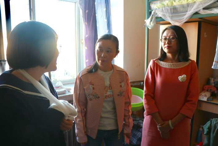 三位老师先探望了前几日意外受伤、右手手骨骨折的16级吴云同学并将提前准备好的礼物送给她,并表示一定会尽力解决她的任何困难。下午五点半三位老师准时到达了大学城宿舍区。在接下来的走寝过程中,老师们不仅仔细检查了学生的寝室卫生状况和生活环境,还关切地询问了同学们的生活状态。每走到一个寝室,老师们都与同学们亲切交谈,了解同学们在衣食住行方面的情况,也想知道同学们在开学期间是否遇到了困难或者存在一些疑问,同学们也积极反馈,畅所欲言。走寝活动在轻松愉悦的氛围中进行得非常顺利,寝室中不时传出阵阵笑声,相信这次走寝活动会让同学们在新环境里感受到属于家的安心与温暖。